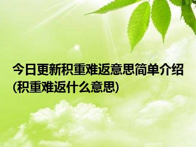 目前上述的内容应该能够为大家解答出大家对于积重难返意思简单介绍(积重难返什么意思)的疑惑了,所以如果大家还想要了解更多的知识内容,也可以关注本站其他文章进行了解哦。