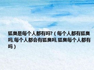 目前大家应该是对每个人都有狐臭吗,每个人都会有狐臭吗,狐臭每个人都有吗比较感兴趣的,所以今天小编CC就来为大家整理了一些关于每个人都有狐臭吗,每个人都会有狐臭吗,狐臭每个人都有吗方面的相关知识来分享给大家,希望大家会喜欢哦。