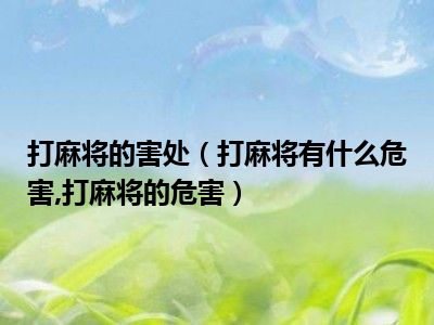目前大家应该是对打麻将有什么危害,打麻将的危害比较感兴趣的,所以今天小编CC就来为大家整理了一些关于打麻将有什么危害,打麻将的危害方面的相关知识来分享给大家,希望大家会喜欢哦。