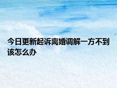 目前大家应该是对起诉离婚调解一方不到该怎么办比较感兴趣的,所以今天CC就来为大家整理了一些关于起诉离婚调解一方不到该怎么办方面的相关知识来分享给大家,希望大家会喜欢哦。