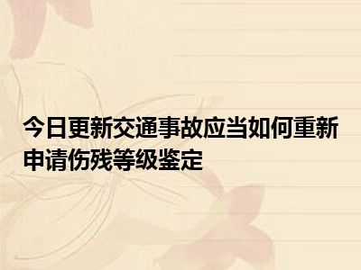 目前大家应该是对交通事故应当如何重新申请伤残等级鉴定比较感兴趣的,所以今天CC就来为大家整理了一些关于交通事故应当如何重新申请伤残等级鉴定方面的相关知识来分享给大家,希望大家会喜欢哦。