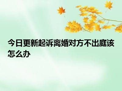 目前大家应该是对起诉离婚对方不出庭该怎么办比较感兴趣的,所以今天CC就来为大家整理了一些关于起诉离婚对方不出庭该怎么办方面的相关知识来分享给大家,希望大家会喜欢哦。