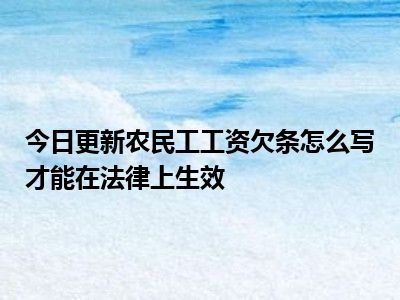 目前大家应该是对农民工工资欠条怎么写才能在法律上生效比较感兴趣的,所以今天CC就来为大家整理了一些关于农民工工资欠条怎么写才能在法律上生效方面的相关知识来分享给大家,希望大家会喜欢哦。