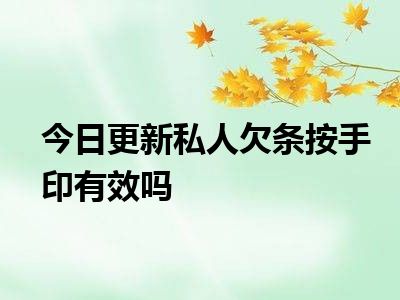 私人欠条按手印有效。只要是欠条内容是双方真实意思的表达,当事人在欠条上按手印的,应当认定其具有与签字或者盖章同等的法律效力。