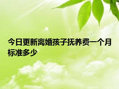 目前大家应该是对离婚孩子抚养费一个月标准多少比较感兴趣的,所以今天CC就来为大家整理了一些关于离婚孩子抚养费一个月标准多少方面的相关知识来分享给大家,希望大家会喜欢哦。