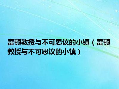 1、《雷顿教授与不可思议的小镇》(日语:レイトン教授と不思议な町,英语:Professor Layton and the Curious Village)是一款的任天堂DS用益智冒险游戏。
