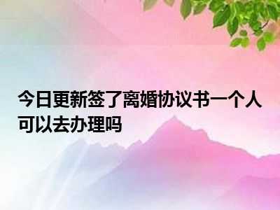 目前大家应该是对签了离婚协议书一个人可以去办理吗比较感兴趣的,所以今天CC就来为大家整理了一些关于签了离婚协议书一个人可以去办理吗方面的相关知识来分享给大家,希望大家会喜欢哦。