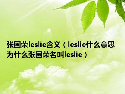 相信目前很多小伙伴对于leslie什么意思 为什么张国荣名叫leslie都比较感兴趣,那么小编今天在网上也是收集了一些与leslie什么意思 为什么张国荣名叫leslie相关的信息来分享给大家,希望能够帮助到大家哦。