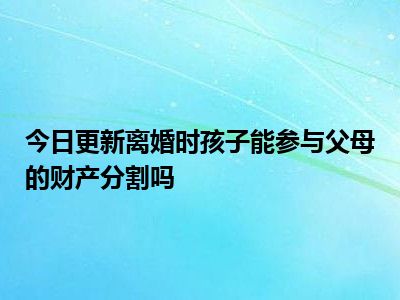 目前大家应该是对离婚时孩子能参与父母的财产分割吗比较感兴趣的,所以今天CC就来为大家整理了一些关于离婚时孩子能参与父母的财产分割吗方面的相关知识来分享给大家,希望大家会喜欢哦。