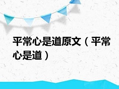 导读 相信目前很多小伙伴对于平常心是道都比较感兴趣,那么小搜今天在网上也是收集了一些与平常心是道相关的信息来分享给大家,希望能够帮助到大