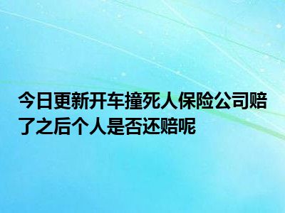 目前大家应该是对开车撞死人保险公司赔了之后个人是否还赔呢比较感兴趣的,所以今天CC就来为大家整理了一些关于开车撞死人保险公司赔了之后个人是否还赔呢方面的相关知识来分享给大家,希望大家会喜欢哦。