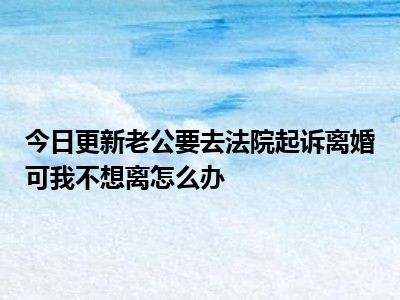 目前大家应该是对老公要去法院起诉离婚,可我不想离,怎么办比较感兴趣的,所以今天CC就来为大家整理了一些关于老公要去法院起诉离婚,可我不想离,怎么办方面的相关知识来分享给大家,希望大家会喜欢哦。