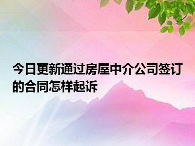 目前大家应该是对通过房屋中介公司签订的合同怎样起诉比较感兴趣的,所以今天CC就来为大家整理了一些关于通过房屋中介公司签订的合同怎样起诉方面的相关知识来分享给大家,希望大家会喜欢哦。
