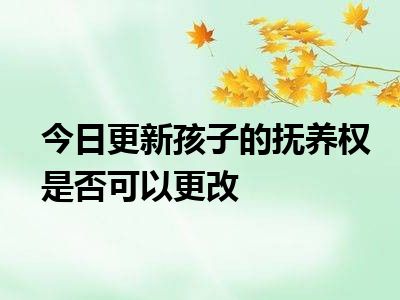 目前大家应该是对孩子的抚养权是否可以更改比较感兴趣的,所以今天CC就来为大家整理了一些关于孩子的抚养权是否可以更改方面的相关知识来分享给大家,希望大家会喜欢哦。
