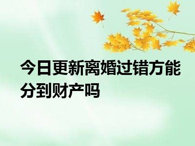 目前大家应该是对离婚过错方能分到财产吗比较感兴趣的,所以今天CC就来为大家整理了一些关于离婚过错方能分到财产吗方面的相关知识来分享给大家,希望大家会喜欢哦。