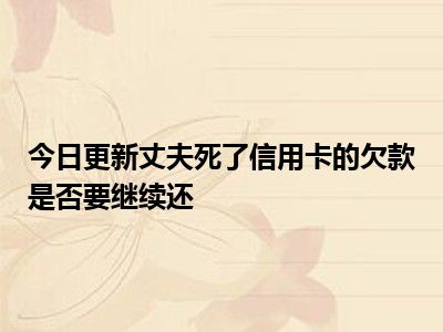 目前大家应该是对丈夫死了信用卡的欠款是否要继续还比较感兴趣的,所以今天CC就来为大家整理了一些关于丈夫死了信用卡的欠款是否要继续还方面的相关知识来分享给大家,希望大家会喜欢哦。