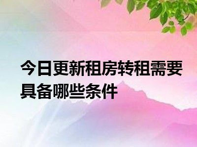 目前大家应该是对租房转租需要具备哪些条件比较感兴趣的,所以今天CC就来为大家整理了一些关于租房转租需要具备哪些条件方面的相关知识来分享给大家,希望大家会喜欢哦。