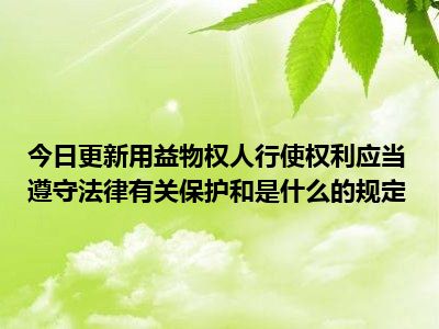 目前大家应该是对用益物权人行使权利应当遵守法律有关保护和是什么的规定比较感兴趣的,所以今天CC就来为大家整理了一些关于用益物权人行使权利应当遵守法律有关保护和是什么的规定方面的相关知识来分享给大家,希望大家会喜欢哦。