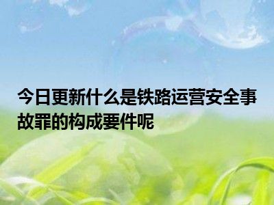 目前大家应该是对什么是铁路运营安全事故罪的构成要件呢比较感兴趣的,所以今天CC就来为大家整理了一些关于什么是铁路运营安全事故罪的构成要件呢方面的相关知识来分享给大家,希望大家会喜欢哦。