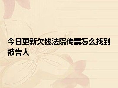 目前大家应该是对欠钱法院传票怎么找到被告人比较感兴趣的,所以今天CC就来为大家整理了一些关于欠钱法院传票怎么找到被告人方面的相关知识来分享给大家,希望大家会喜欢哦。