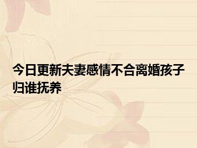 目前大家应该是对夫妻感情不合离婚孩子归谁抚养比较感兴趣的,所以今天CC就来为大家整理了一些关于夫妻感情不合离婚孩子归谁抚养方面的相关知识来分享给大家,希望大家会喜欢哦。