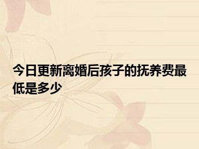 目前大家应该是对离婚后孩子的抚养费最低是多少比较感兴趣的,所以今天CC就来为大家整理了一些关于离婚后孩子的抚养费最低是多少方面的相关知识来分享给大家,希望大家会喜欢哦。