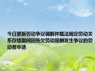 目前大家应该是对劳动争议调解仲裁法规定劳动关系存续期间因拖欠劳动报酬发生争议的劳动者申请比较感兴趣的,所以今天CC就来为大家整理了一些关于劳动争议调解仲裁法规定劳动关系存续期间因拖欠劳动报酬发生争议的劳动者申请方面的相关知识来分享给大家,希望大家会喜欢哦。