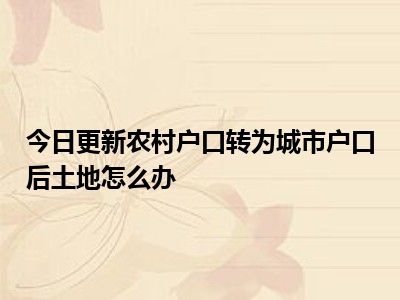 目前大家应该是对农村户口转为城市户口后土地怎么办比较感兴趣的,所以今天CC就来为大家整理了一些关于农村户口转为城市户口后土地怎么办方面的相关知识来分享给大家,希望大家会喜欢哦。