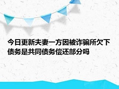 目前大家应该是对夫妻一方因被诈骗所欠下债务是共同债务偿还部分吗比较感兴趣的,所以今天CC就来为大家整理了一些关于夫妻一方因被诈骗所欠下债务是共同债务偿还部分吗方面的相关知识来分享给大家,希望大家会喜欢哦。