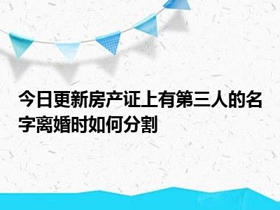 目前大家应该是对房产证上有第三人的名字离婚时如何分割比较感兴趣的,所以今天CC就来为大家整理了一些关于房产证上有第三人的名字离婚时如何分割方面的相关知识来分享给大家,希望大家会喜欢哦。