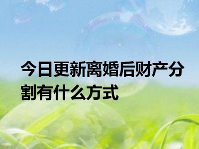 目前大家应该是对离婚后,财产分割有什么方式比较感兴趣的,所以今天CC就来为大家整理了一些关于离婚后,财产分割有什么方式方面的相关知识来分享给大家,希望大家会喜欢哦。
