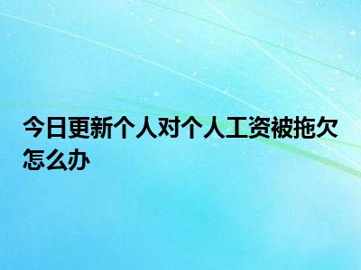 如果个人拖欠工资的,劳动者可以向劳动仲裁委员会申请劳动仲裁,对仲裁结果不服的,可以进行诉讼。克扣或者无故拖欠劳动者工资,侵害劳动者合法权益的,应责令支付劳动者的工资报酬、经济补偿,并可责令按相当于支付劳动者工资报酬、经济补偿总合的1至5倍支付劳动者赔偿金。