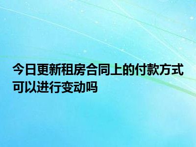 目前大家应该是对租房合同上的付款方式可以进行变动吗比较感兴趣的,所以今天CC就来为大家整理了一些关于租房合同上的付款方式可以进行变动吗方面的相关知识来分享给大家,希望大家会喜欢哦。