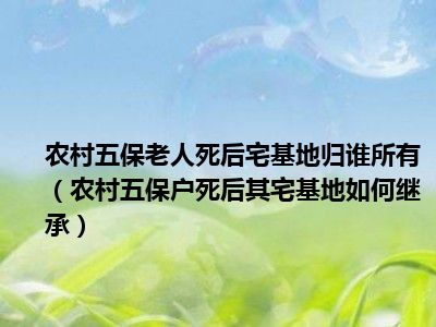 目前大家应该是对农村五保户死后其宅基地如何继承比较感兴趣的,所以今天CC就来为大家整理了一些关于农村五保户死后其宅基地如何继承方面的相关知识来分享给大家,希望大家会喜欢哦。