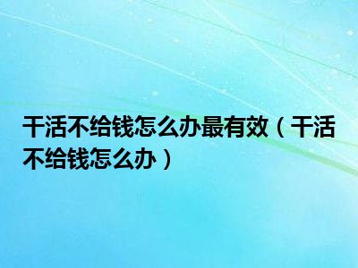 导读目前大家应该是对干活不给钱怎么办比较感兴趣的,所以今天CC就来为大家整理了一些关于干活不给钱怎么办方面的相关知识来分享给大家,希望大...