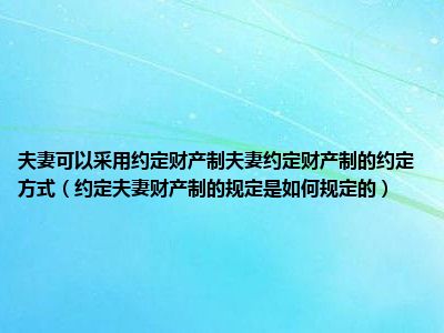目前大家应该是对约定夫妻财产制的规定是如何规定的比较感兴趣的,所以今天CC就来为大家整理了一些关于约定夫妻财产制的规定是如何规定的方面的相关知识来分享给大家,希望大家会喜欢哦。