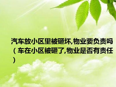 目前大家应该是对车在小区被砸了,物业是否有责任比较感兴趣的,所以今天CC就来为大家整理了一些关于车在小区被砸了,物业是否有责任方面的相关知识来分享给大家,希望大家会喜欢哦。