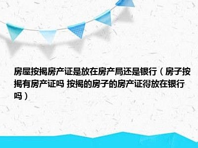 按揭的房子的房产证是不放在银行的,是在您本人手里。贷款之后,土地局会给银行开具《他项权利证》由银行保存,并给你的《产权证》做抵押登记,你的《产权证》就可以拿走了。扩展资料:按揭的特征:在设立按揭时并不要求必须有特定财产权利特别是所有权的移转,银行只要求将权利证书交给贷款人保管即可。“权利证书的转移仅意味着权利的移转”,但这种证书的转移并不意味着所有权的转移。比如,房地产证书仅起到一种证明的作用,单纯的转让房地产证并不能当然发生房屋产权转移的法律效力。在现行法律之下,还需经过登记公示才能使该转让行为发生法律效力,受让人取得所有权。银行要求将权利证书交给银行保管,并不是要求将担保房屋的所有权转让给自己、在借款人偿还债务后所有权再返还给按揭人,银行这样做只是为了防止一屋多卖现象的发生,防止按揭人违反约定处分已设立按揭的房屋,从而保障担保债权的有效实现。在上述地区,按揭的实现并不要求取得标的物的所有权。在实践中,如果按揭人不履行义务,即到期未还清本息时,通常的做法是由售房人将按揭的标的回购,并以回购款清偿按揭人未偿付的本息,若有第三人愿以高出原价的70%受让,则应由第三人购买。