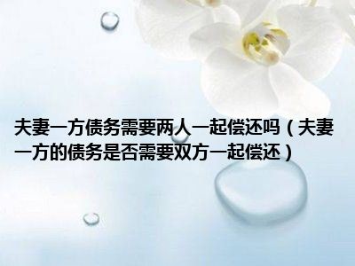 目前大家应该是对夫妻一方的债务是否需要双方一起偿还比较感兴趣的,所以今天CC就来为大家整理了一些关于夫妻一方的债务是否需要双方一起偿还方面的相关知识来分享给大家,希望大家会喜欢哦。