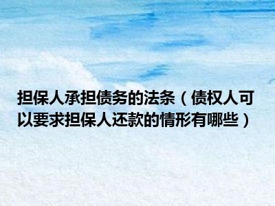 目前大家应该是对债权人可以要求担保人还款的情形有哪些比较感兴趣的,所以今天CC就来为大家整理了一些关于债权人可以要求担保人还款的情形有哪些方面的相关知识来分享给大家,希望大家会喜欢哦。