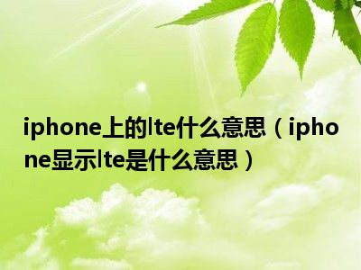 导读 1、iphone上显示LTE是什么意思?2、按照苹果官方的解释,iphone显示LTE代表你的运营商的LTE网络可用,你的iPhone可以通过这个网络连接互联