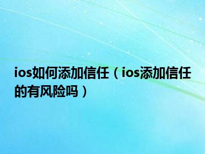 导读 1、ios添加信任的有风险吗2、一般来说,在ios中添加可信的应用程序是没有风险的。之所以会出现“不可信的app开发者”,是因为这个app的证书