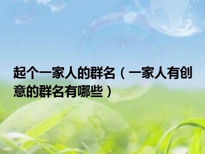 随着移动互联网的普及,许多家庭关系都得到了拉近,有了家庭群后,逢年过节或者旅行玩耍,都可以将这些有趣的事情分享到家庭群里面。那么一家人有创意的群名有哪些呢?