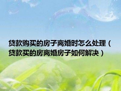 导读目前大家应该是对贷款买的房离婚房子如何解决比较感兴趣的,所以今天CC就来为大家整理了一些关于贷款买的房离婚房子如何解决方面的相关知识...