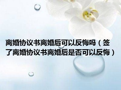 目前大家应该是对签了离婚协议书,离婚后是否可以反悔比较感兴趣的,所以今天CC就来为大家整理了一些关于签了离婚协议书,离婚后是否可以反悔方面的相关知识来分享给大家,希望大家会喜欢哦。