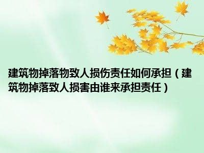 目前大家应该是对建筑物掉落致人损害由谁来承担责任比较感兴趣的,所以今天CC就来为大家整理了一些关于建筑物掉落致人损害由谁来承担责任方面的相关知识来分享给大家,希望大家会喜欢哦。