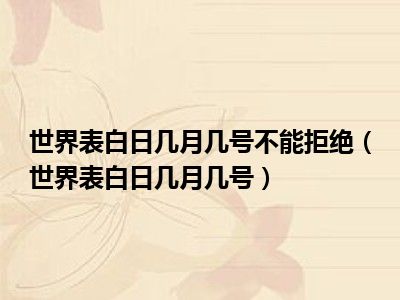 1、世界表白日每年的4月14日被称为世界表白日,这天的下午称为爱情下午,被表白的男或女不可以拒绝,若想拒绝必须以情侣身份相处5个月,五个月后若想分开则可,但不可以伤害对方。