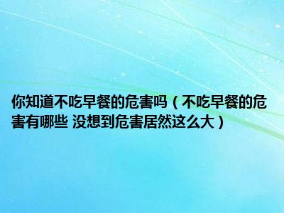 目前大家应该是对不吃早餐的危害有哪些 没想到危害居然这么大比较感兴趣的,所以今天小编CC就来为大家整理了一些关于不吃早餐的危害有哪些 没想到危害居然这么大方面的相关知识来分享给大家,希望大家会喜欢哦。