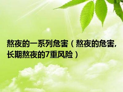 目前大家应该是对熬夜的危害,长期熬夜的7重风险比较感兴趣的,所以今天小编CC就来为大家整理了一些关于熬夜的危害,长期熬夜的7重风险方面的相关知识来分享给大家,希望大家会喜欢哦。
