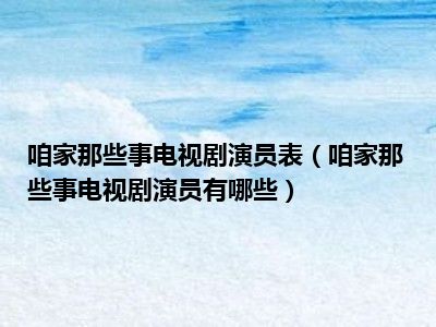相信目前很多小伙伴对于咱家那些事电视剧演员有哪些都比较感兴趣,那么小编今天在网上也是收集了一些与咱家那些事电视剧演员有哪些相关的信息来分享给大家,希望能够帮助到大家哦。